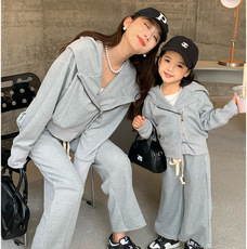 Mino家亲子装母子母女休闲韩范套装连帽设计款套卫衣两件套