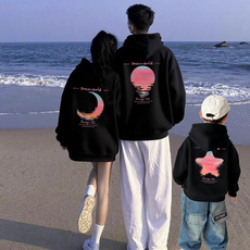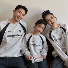 亲子装秋季一家三口四口母女母子潮牌宽松连帽卫衣外套装长袖上衣