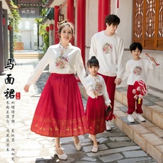 中国风汉服亲子装一家三四口秋冬卫衣套装新年服母子母女裙表演服