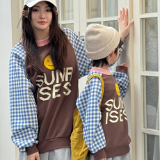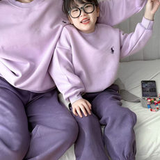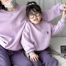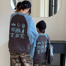 2025春秋季亲子多巴胺新品卫衣套装母子母女简约宽松圆领亲子装