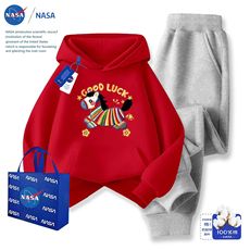 NASA红色亲子装一家三四口母子秋冬款卫衣2026马年圣诞童装外套装