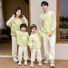 潮亲子装套装春秋装2022新款潮一家三口四口母子母女卫衣全家福