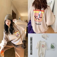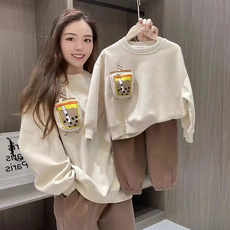 珍珠奶茶杯亲子装卫衣一家三四口秋装长袖秋天潮ins母女母子套装