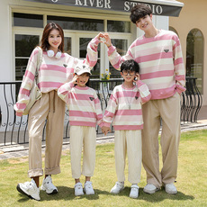 亲子装2025新款春秋季套装条纹卫衣外套洋气母子母女装一家三四口