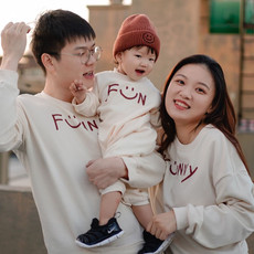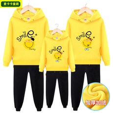 亲子装加绒装裤子笑脸潮一家三口全家装卫衣母子母女装家庭套装