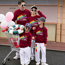 亲子装秋冬装2021新款潮母女套装母子裤子一家三口全家装彩虹卫衣