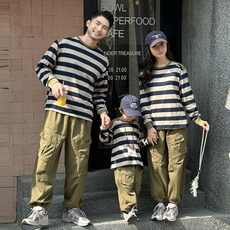 条纹亲子装秋装卫衣2025新款一家三口四口母子母女装长袖T恤套装