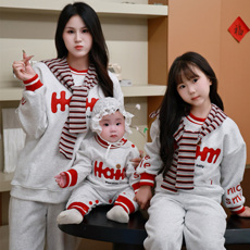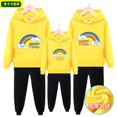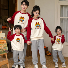 马年连帽卫衣套装2026新款亲子装加绒加厚一家三口母子母女装童装