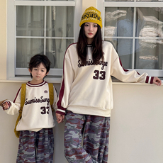 亲子装裤子秋冬一家三口上衣2025新款母女母子加绒套装字母卫衣潮
