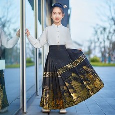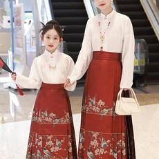 亲子装女童马面裙套装春秋款中国风古装中大童2024新款明制汉服