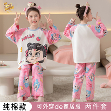 女儿童睡衣卡通哪吒长袖中大童女孩2025春秋季新款学生家居服套装