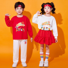 儿童秋季汉服红色表演服亲子装古风唐装国风男女童生日新中式套装