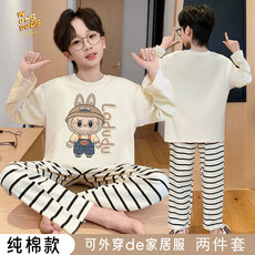 春秋冬季全棉磨毛男童儿童睡衣小学生亲子纯棉家居服小中大童套装