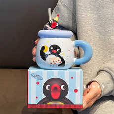 Pingu联名伴手礼可爱卡通企鹅陶瓷马克杯带盖高颜值水杯生日礼物