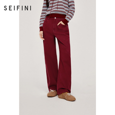 诗凡黎安可拉红直筒牛仔裤2024秋美式高腰显瘦小个子甜酷阔腿裤女