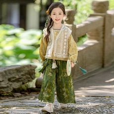 女童秋套装2025新款小女孩洋气时髦针织儿童阔腿裤宝宝休闲三件套