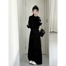 高级感运动套装女春秋欧货复古休闲炸街卫衣外套黑色阔腿裤两件套
