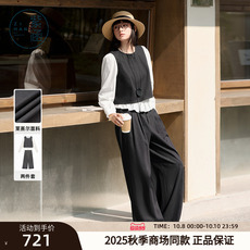紫涵设计感假两件圆领休闲上衣宽松阔腿长裤两件套装女春秋季新款