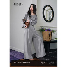 马克华菲女装时尚条纹显瘦休闲西装阔腿裤套装