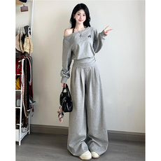 气质减龄chic休闲露肩套装女入秋韩系一整套宽松阔腿裤运动两件套