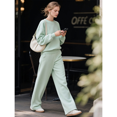 浅绿色套装女2025年秋季新款慵懒风休闲圆领卫衣高腰阔腿裤两件套