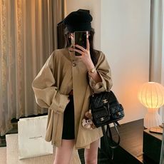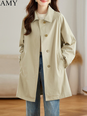 纯色宽松显瘦韩系休闲翻领2025秋季新款长袖中长款外套女风衣B023