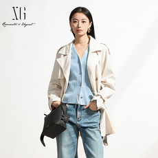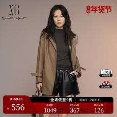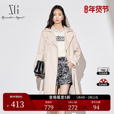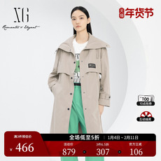 XG雪歌中长款卡其色休闲风衣时尚春季新款大翻领设计长袖外套女装