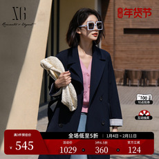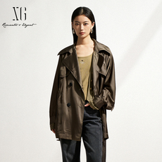 XG雪歌中长款双排扣休闲风衣2025秋季新款通勤咖色翻领长袖外套女
