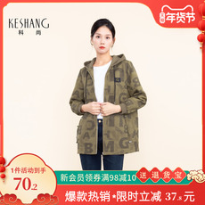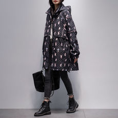 科尚连帽中长款外套女2026春季新款长袖拉链显瘦风衣休闲印花上衣