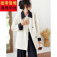 秋季女装日系简约中长款风衣质感水洗亚麻长袖薄款外套休闲外搭