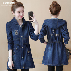 时尚大码胖妹妹牛仔外套女2025长袖连帽中长款显瘦韩版休闲风衣潮
