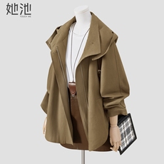 她池连帽外套2026春季新款女装时尚休闲长袖宽松款显瘦中长款风衣