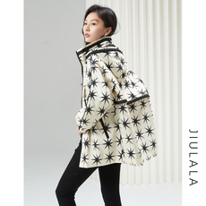 科尚连帽中长款外套女2026春季新款长袖拉链显瘦风衣休闲印花上衣