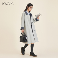 movk拼接色尖领风衣女中长款休闲外套秋冬长袖通勤百搭气质大衣