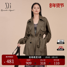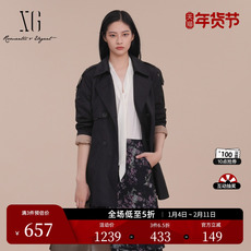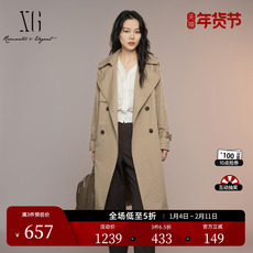 XG雪歌中长款双排扣休闲风衣2025春季新款通勤长袖翻领风衣外套女