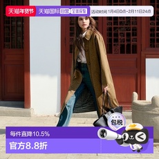 未知未觉英伦风复古棕色中长款收腰长袖休闲风衣外套女W434F11523