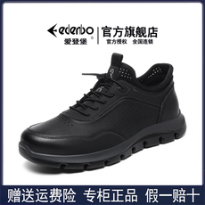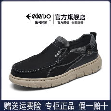 爱登堡休闲鞋男2025年秋季新款透气懒人鞋头层牛皮纯黑百搭皮鞋