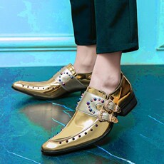 金色男士皮鞋 柳钉潮流时尚休闲男鞋大码45 46双扣套脚懒人鞋帅气