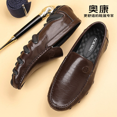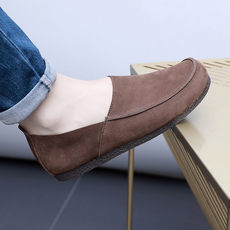 春秋头层牛皮软底休闲男鞋懒人鞋圆头透气百搭平底鞋男皮鞋开车鞋