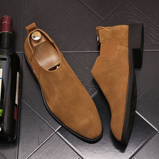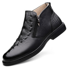 男鞋新款休闲皮鞋男软底潮流懒人鞋保暖加绒短靴中帮工装鞋马丁靴