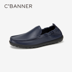 公牛世家男鞋秋季真皮套脚休闲皮鞋一脚蹬开车鞋黑色懒人豆豆鞋子