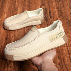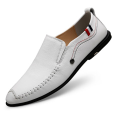 跨境男鞋白色休闲皮鞋男士真皮懒人鞋一脚蹬软底豆豆鞋驾车乐福鞋
