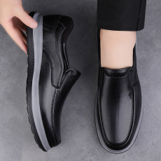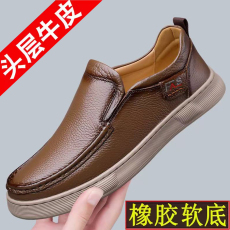2025新款男士休闲软底皮鞋懒人一脚蹬男鞋牛皮中老年爸爸工作鞋子
