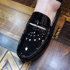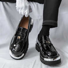 休闲皮鞋男正装商务英伦亮面一脚蹬男鞋青年内增高懒人豆豆鞋