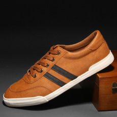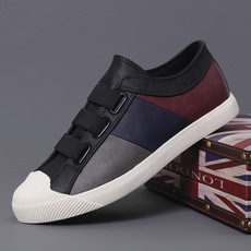 春秋男士新款皮鞋百搭低帮拼色系带潮鞋轻便软底时尚懒人休闲鞋男