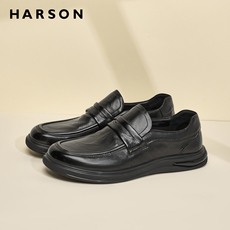 哈森鞋子男鞋秋季新款黑色商务休闲皮鞋男士时尚真皮懒人鞋一脚蹬