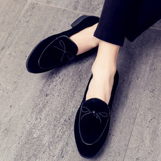 英伦尖头休闲皮鞋男士潮流夜店发型师反绒磨砂皮懒人豆豆鞋男鞋子