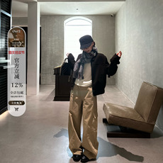 JANEONESS 复古立领抽绳廓形麂皮宽松简约休闲短款夹克外套女秋季