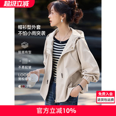 韩版连帽减龄休闲夹克女专柜正品秋季薄款中年妈妈百搭风衣短外套