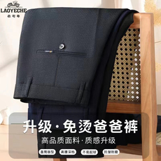 老爷车秋冬厚款高弹力休闲裤抗皱免烫中年商务高腰直筒宽松男长裤